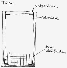 Nicht zuletzt sei gesagt: keine Angst vorm "selberbauen". Man braucht kein großes handwerkliches Geschick, um einen Kaninchenkäfig zu basteln, außer man erhebt einen großen ästhetischen Anspruch. Ich hatte diesen nicht, mein Ziel war eher einen sicheren Käfig zu bauen. Sowohl ausbruch- als auch verletzungssicher. Vorraussetzung für den Käfigbau ist zwar die Beherrschung einer Bohrmaschine und der Stichsäge (kann man ausleihen) - kurz an einem Probestück ausprobiert, kann aber auch der Laie für unsere Zwecke genügend damit hantieren.